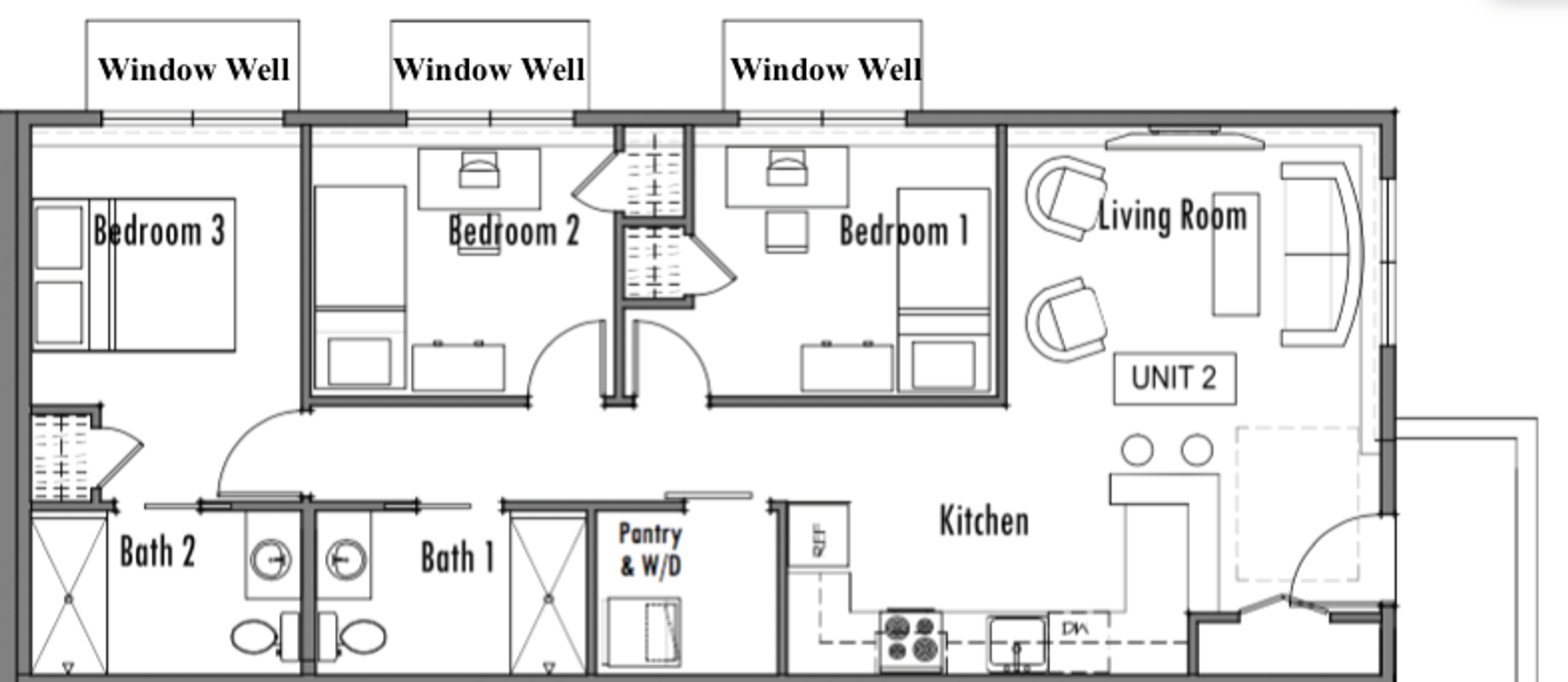 EcoFlats-University Playfield is offering rooms for rent in a 3 bedroom/2 bath unit in a ground level, daylight basement units. This is an ADA accessible unit with separate entrances at the back side of the building. We are a small, 8-unit building, and all units in the building are rented except this one!