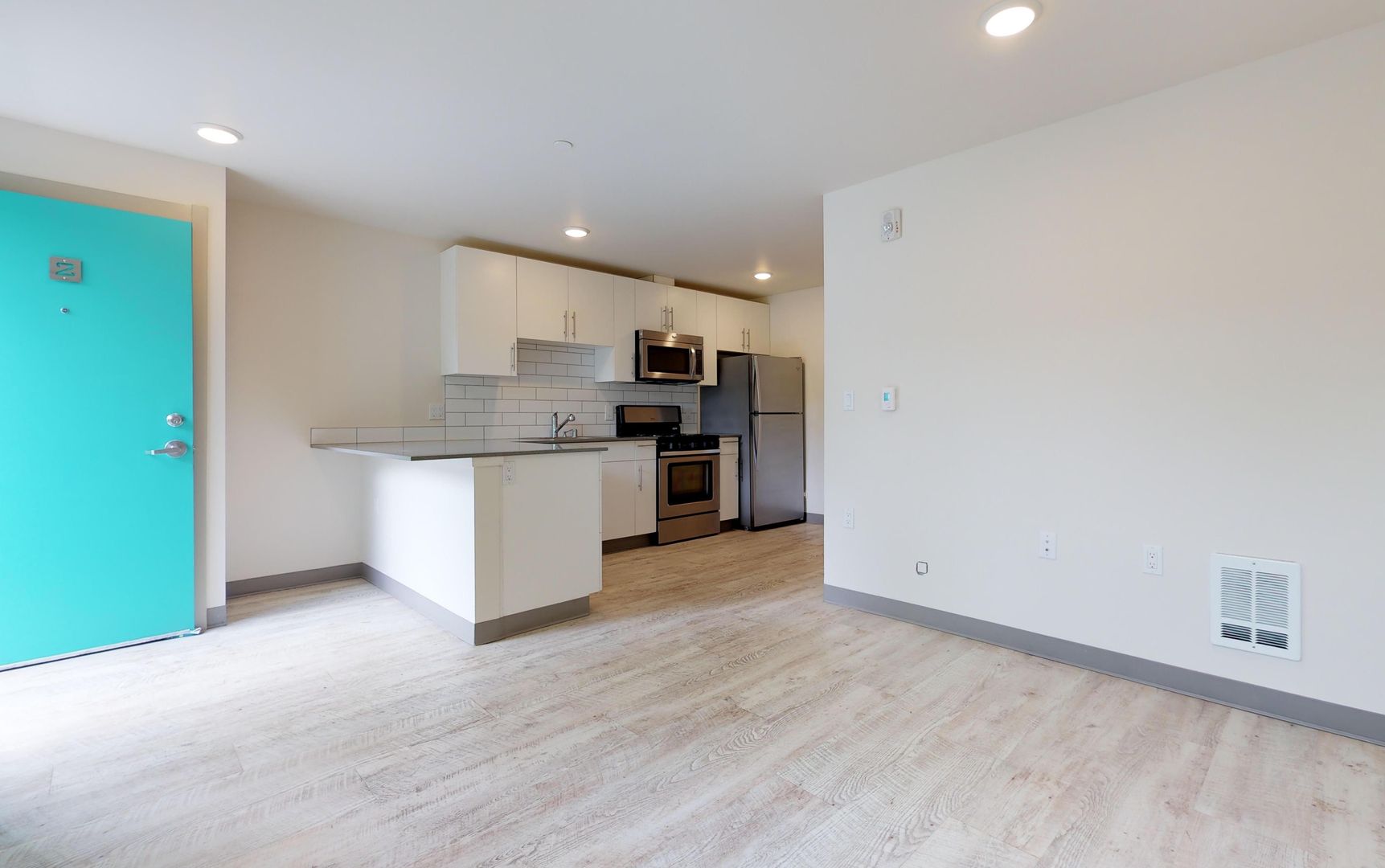Newer built-green building in the heart of the U-District featuring energy efficient appliances and modern fixtures. Apartment features: spacious kitchen with breakfast bar, sleek subway tile, hardwood floors, and more! The building is 4-Star Built Green and was sustainably constructed--feel good about where you live!